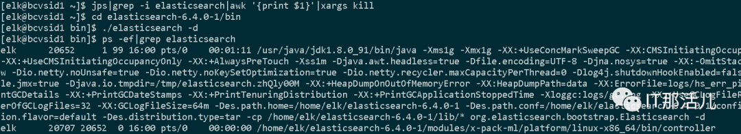jps|grep -i elasticsearch|awk '{print $1}'|xargs kill –-停止新ES集群各节点
