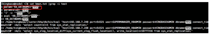 [kingbase@node1 ~]$ cat kmon.txt |grep -i test