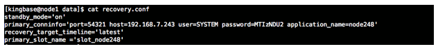 2)在原主库下创建recovery.conf文件后,sys_ctl手工启动数据库服务。