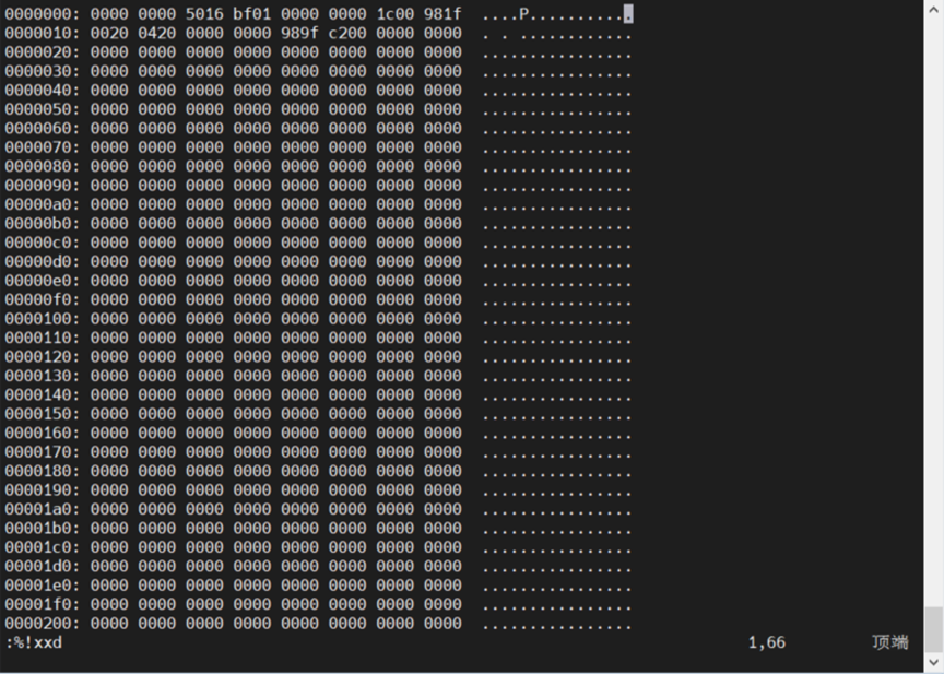 进入编辑模式,文件全部修改为0,然后写入 :%!xxd -r