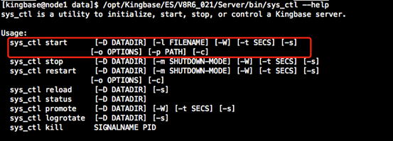 [kingbase@node1 data]$ /opt/Kingbase/ES/V8R6_021/Server/bin/sys_ctl start -D /data/kingbase/v8r6_021/data