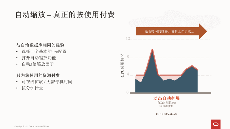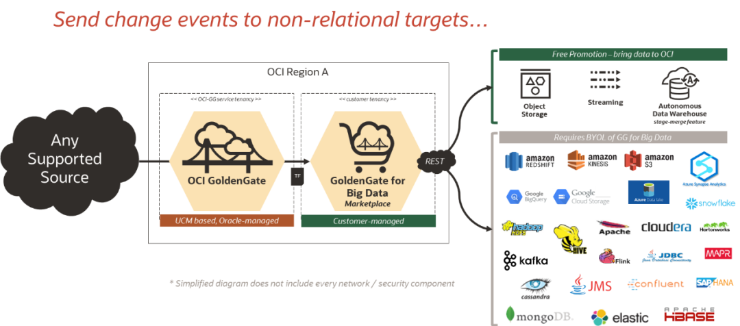 OCI GoldenGate运行在最新的Oracle GoldenGate 21c微服务体系结构之上,该体系结构可以全球联网数据资源。OCI GoldenGate的完全封装的微服务,使客户能够将该服务作为一流的infrastructure-as-code service,无缝集成到他们自己的dev-ops CI/CD pipeline 中。OCI GoldenGate的体系结构可与GoldenGate的本地Docker以及Kubernetes “mesh”部署集成,而无需共享框架依赖项和共享存储库,从而以较低的TCO实现卓越的可管理性。只需点击一下,开发人员和数据库管理员即可将该服务设置为3倍的自动扩展,这提供了一种可扩展的方式,使客户可以从小规模的配置开始,随着工作负载的增加而自动增长,并且这个过程是完全在线完成的,无需停机时间 。