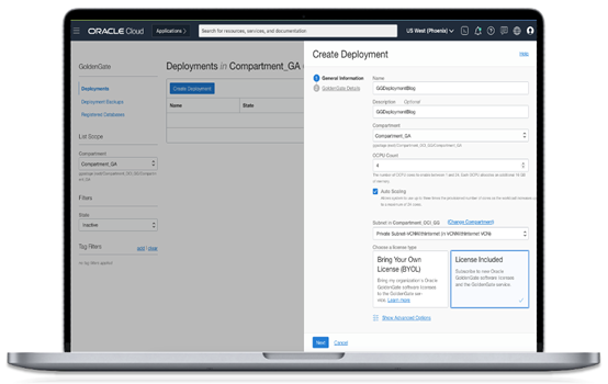 首先,请登录OCI控制台并开始创建OCI GoldenGate部署。