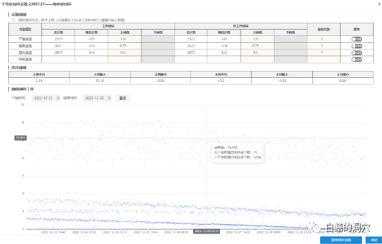 再来看看另外一个数据库的共享缓存区命中率,其点的集中度还是比较集中,但是还是存在散落分布的,差异很大的值。这些值要不要告警呢?告警对我们的运维有什么意义呢?也真的说不清楚。而且如果我们运维数百套,甚至上千套类似的数据库系统,我们也无法对这些数据库系统设置合理的基线阈值。如果不去做个性化的设置,那么基线告警就不准确,运维告警工作陷入了两难的境地。
