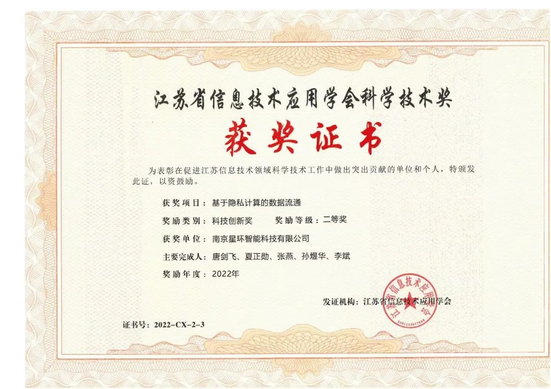 近日,2022年度江苏省信息技术应用学会科学技术奖获奖名单公布,星环科技基于隐私计算的数据流通产品荣获科技创新奖二等奖。