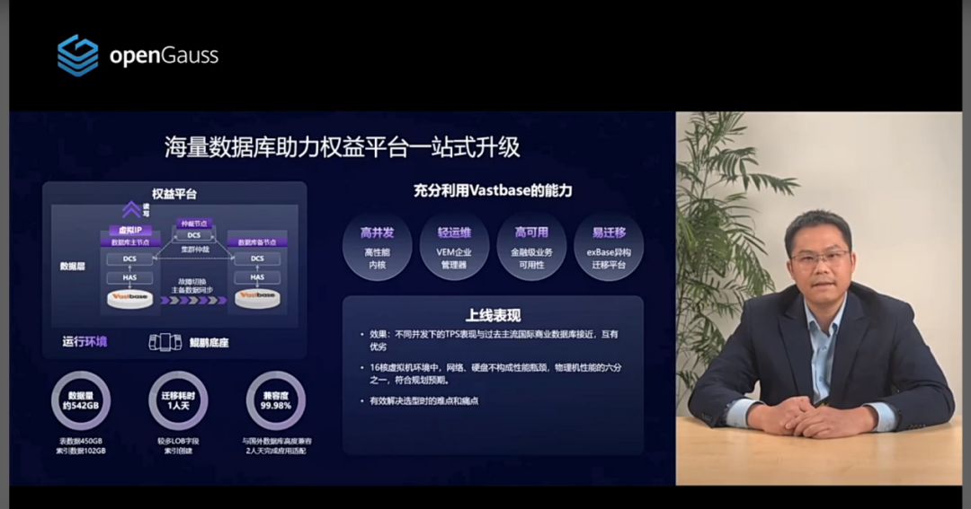 北京海量数据技术股份有限公司总裁肖枫,携手金融行业用户——桂林银行信息技术部副总经理王嘉懿,以《携手海量数据,共赴openGauss新征程》为主题进行了联合宣讲。