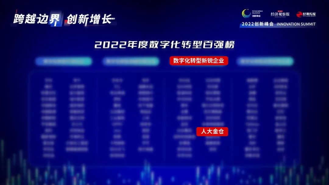 近日,由《经济观察报》主办的第十二届创新峰会在云端举行,人大金仓凭借领先的数据库技术及丰富的实践经验,斩获峰会现场发布的“2022年度数字化转型百强”、“2022年度卓越创新领军者”双料大奖。