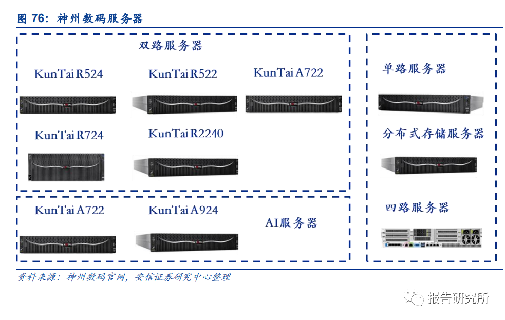 神州数码主营业务为云计算和数字化转型业务、信息技术应用创新业务、信息技术应用创新 业务。主要产品为云管理服务(MSP)、数字化解决方案(ISV)、视频云产品和服务、超算 中心云上服务、信息技术应用创新业务、信息技术应用创新业务。2020 年开始,神州数码 通过设立子公司神州信创,打造神州鲲泰厦门生产基地、厦门信创研究院及厦门鲲鹏超算中 心等把握信创机遇,并积极拓展飞腾、龙芯 PC 产品线及海光服务器产品线。公司围绕基于 “鲲鹏+昇腾”自主品牌展开信创产业布局: