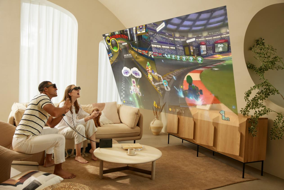 早在2021年,雷鸟创新便推出了首款消费级双目全彩MicroLED光波导AR眼镜“雷鸟智能眼镜先锋版”,这一产品采用全彩MicroLED+光波导技术,在效率、色散、可量产性上取得平衡,率先在轻薄的眼镜形态上实现了画面全彩高亮显示。2022年,雷鸟创新推出了消费级XR眼镜雷鸟Air和雷鸟Air 1S,采用 MicroOLED+Birdbath光学方案,通过与手机、电脑、Switch、PS等设备连接,为用户打造观影、游戏、办公等场景下的高清巨幕体验。