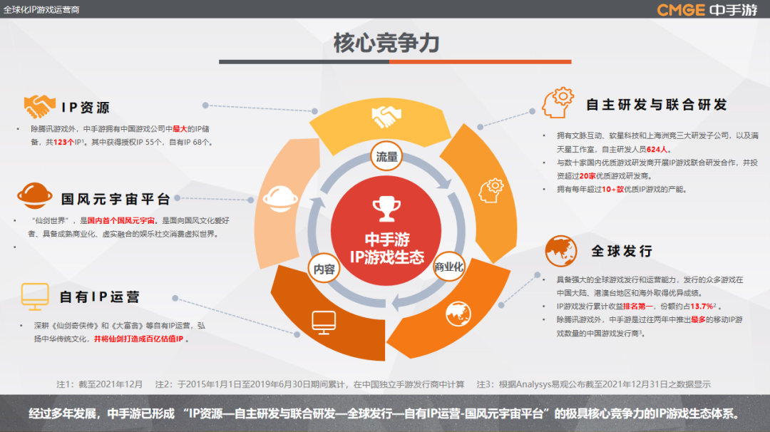 为了进一步加速Rae下一阶段的增长和创新,凯德投资与全球知名的技术公司电通(Dentsu)达成战略合作,共同推动虚拟身份技术的商业创新。先进的技术加持,多元化的运营思路,使品牌和企业能够充分发掘和利用Rae在商业应用中的更大潜力。对Rae的探索和实践的成功,也促使凯德成立了数字创投团队,助力凯德在Web 3.0和元宇宙的探索中保持领先。中手游是国内知名全球化IP游戏运营商,公司以IP为核心,通过自主研发和联合研发,为全球玩家提供精品IP游戏,打造极具竞争力的IP游戏生态体系。经过多年发展,中手游已形成“IP资源—自主研发与联合研发—全球发行—自有IP运营-国风元宇宙平台”的IP游戏生态体系,并借此于激烈市场竞争中仍然保持了稳健发展的良好态势。中手游旗下的《仙剑世界》以《仙剑奇侠传》全系列IP为背景,与中国传统文化做深度结合,还原中华山水美景、传统城镇风貌,并以空岛形式建筑桃源仙境。在此基础上,融合开放世界游戏体验、垂直社交体验、UGC创造体验、虚拟演出体验、文化内容体验于一体,打造泛娱乐社交消费平台,构建国内首个国风元宇宙——仙剑元宇宙。