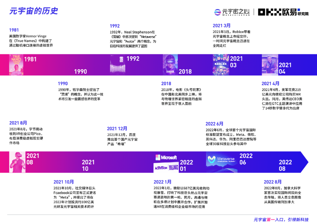 站在年终的尾巴上,我们再次联合聚焦全球区块链行业技术发展趋势并深耕元宇宙、Web3方向的知名研究机构欧易研究院推出了2022元宇宙年度报告,将从“热议中的元宇宙”“元宇宙基础理论”“2022元宇宙产业链”“年度十大关键词”和“2023展望”五大板块为大家梳理和回顾过去一年行业的发展概况,既整理过去,也展望未来。◉ 元宇宙诞生的背景