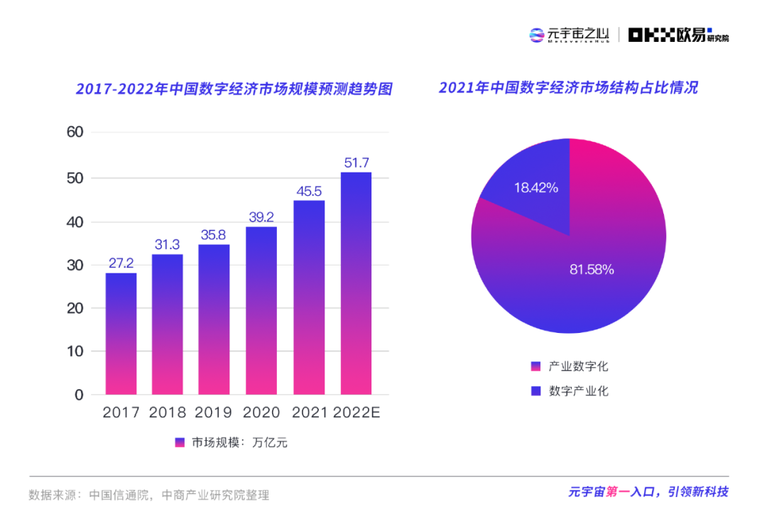 随着大数据、云计算、物联网、区块链、人工智能、5G通信等新兴技术的不断发展,数字化的技术、商品与服务从多方向、多层面、多链条的向传统产业加速渗透。数字经济作为一种新的经济形态,简单点说就是“数字产业化”+“产业数字化”。
