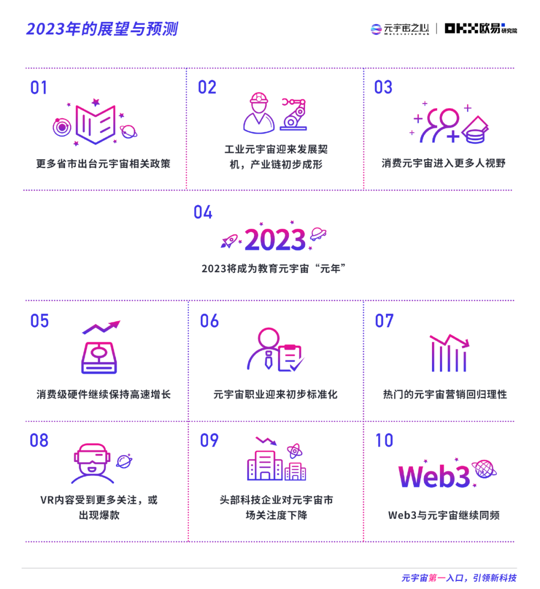以上是对我们去年预测的回顾也是对当下元宇宙发展的一个小结,那么站在2022年的尾巴上,面对即将迎来的2023年,我们又抱有怎样的期待和关注呢?◉ 2023年的展望与预测