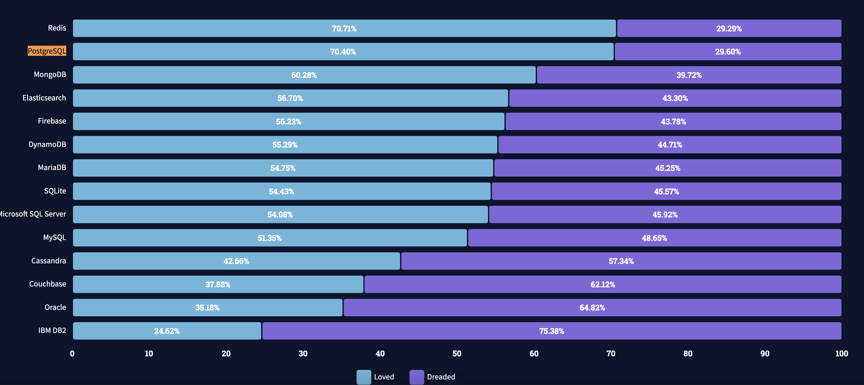 Stackoverflow面向开发者的年度调查:Rust最受喜爱,PostgreSQL 专业开发者最常使用的数据库!最想要的数据库