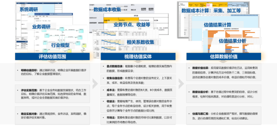 星环数据价值评估的实施,可分为评估估值范围、梳理估值实体和估算数据价值三大步骤。