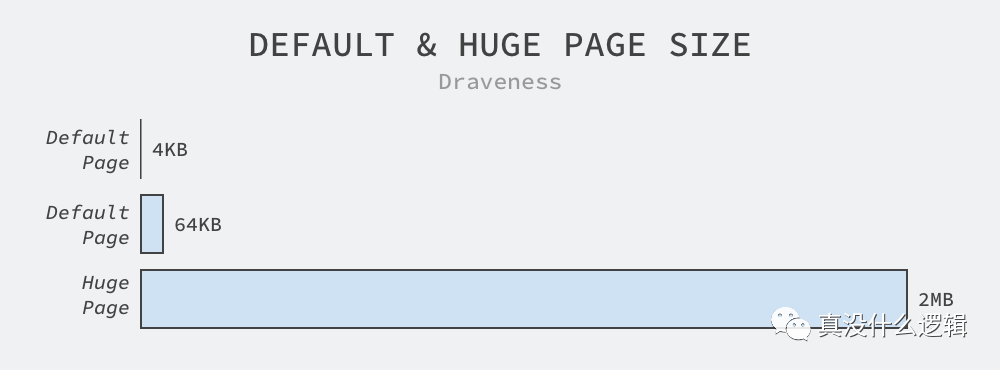 我们都知道 Linux 会以页为单位管理内存,而默认的页面大小为 4KB,虽然部分处理器会使用 8KB、16KB 后者 64KB 作为默认的页面大小,不过 4KB 仍然是操作系统的默认页面配置的主流[^2],虽然 64KB 的页面是 4KB 的 16 倍,但是与最小 2MB 的 HugePages 相比,64KB 的页面实在是不够大,更不用说默认的 4KB 了: