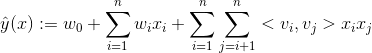 就是我们的FM模型核心的分解向量,k是超参数,一般取值较小(100左右)。