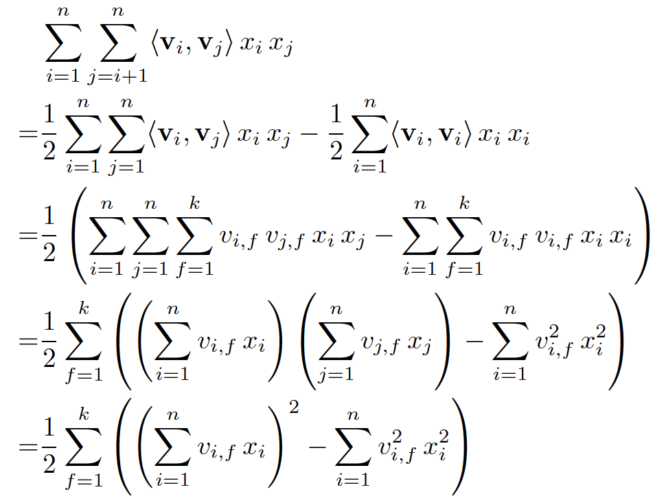 )可以在工程实现上高效地利用梯度下降算法(SGD、ALS等)来训练(即我们可以线性时间复杂度求出下面的