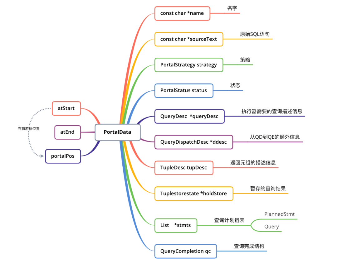 2.根据传入的第二个参数allowDup,如果第一步查找到,从哈希表中决定是否删除。如果true,则删除,否则报错。在哈希表中查找到Portal且允许重复的情况下,在QD节点上会根据第三个参数dupSilent决定是否输出告警信息。执行完毕后,便创建好了一个状态为PORTAL_NEW的Portal。定义Portal数据,包含了:查询语句sourceText、PlannedStmts、查询完成标记qc。注意:QD上根据传递进来的stmt来设置nodeTag,但是QE上为T_Query,因为QE上不是parsed statement,所以不是 T_SelectStmt。最终设置Portal状态为PORTAL_DEFINED。1.设置ddesc,该信息为QD到QE上的额外信息,QD上为NULL,QE上不为NULL。2.设置全局参数,例如:当前活跃的Portal、resourceOwner、context。3.设置Portal参数字段:PortalParams,同样QD上为NULL,QE上不为NULL。4.设置Portal策略(ChoosePortalStrategy)。首先判断是Query还是PlannedStmt,一般情况下的查询语句基本都是PlannedStmt。