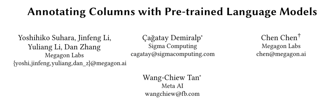 本周推荐的是发表于SIGMOD 2022的论文Annotating Columns with Pre-trained Language Models,提出了一种基于预训练语言模型的多任务学习框架进行表格语义标注,作者来自Megagon Labs和Meta AI等。