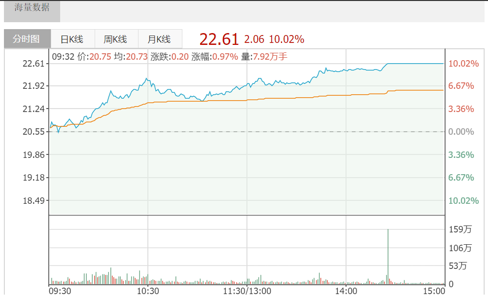 2023年1月3日走势:海量数据(603138)今日触及涨停板,该股近一年涨停23次。