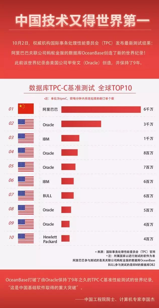 但是不管你信不信,就算所有数据库厂商全都重新跑一遍分,OceanBase可能不一定是第一,但一定也是非常前面的。最低限度,OceanBase是一款和Oracle比起来颇有竞争力的数据库。一个从零开始写的国产数据库做到这个程度,还有一群傻缺出来喷。我都不知道这些人脑袋是不是被驴给踢了。