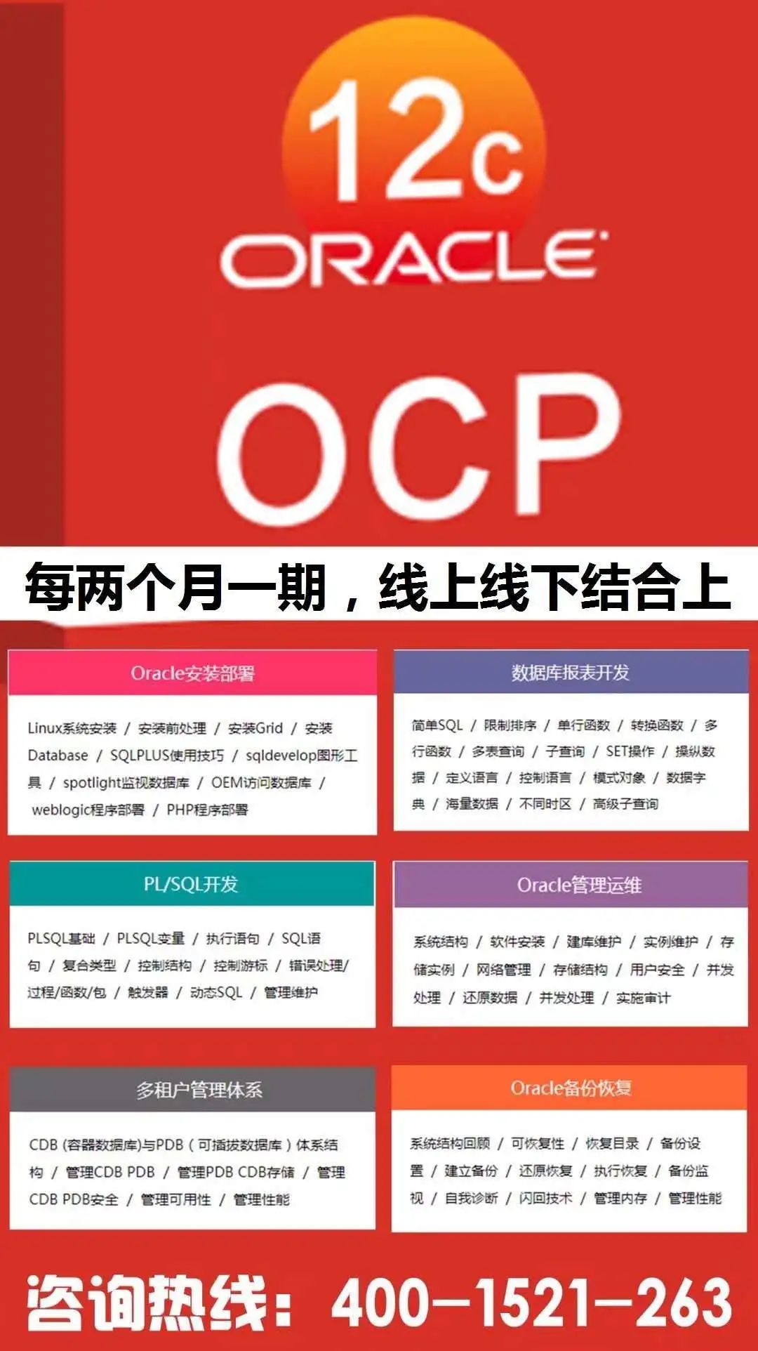 是通过OU(oracle university)参加官方的原厂培训,和以前一样,贵的离谱,OCP认证价格为37155元/人,无法接受,所以很多人敬而远之…