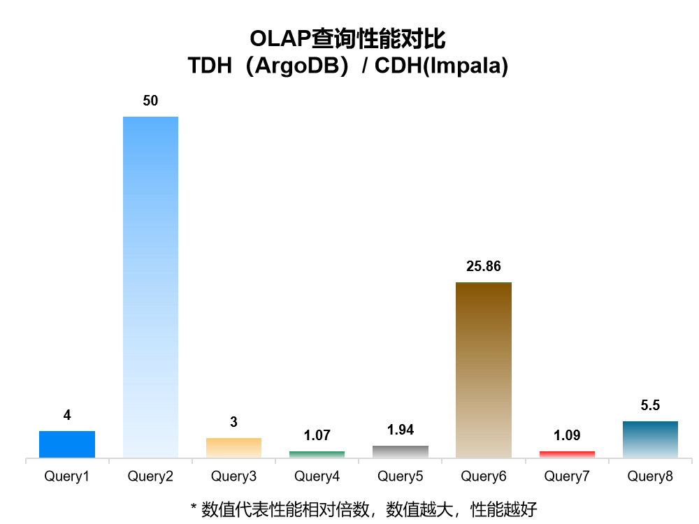 ArgoDB是星环科技自主研发的分布式分析型数据库,同等配置下,基于不同查询分析场景下,TDH(ArgoDB)在聚合统计、关联查询、精确查询类场景下是CDH(Impala)的2~50倍。