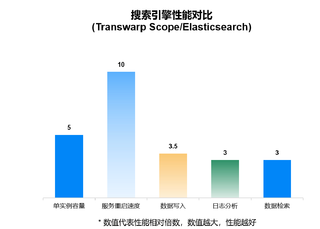 Transwarp Scope是星环科技自主研发的分布式搜索引擎,提供PB级海量数据的交互式多维检索分析服务,单实例可突破至百TB的数据存储,是Elasticsearch的5倍以上,大大降低用户硬件成本。数据批量写入速度相对Elasticsearch提升40%。相对于Elasticsearch, Scope具有很强的容灾和数据恢复能力,重启恢复时间在TB级数据量下控制在分钟级,不到Elasticsearch的1/10。