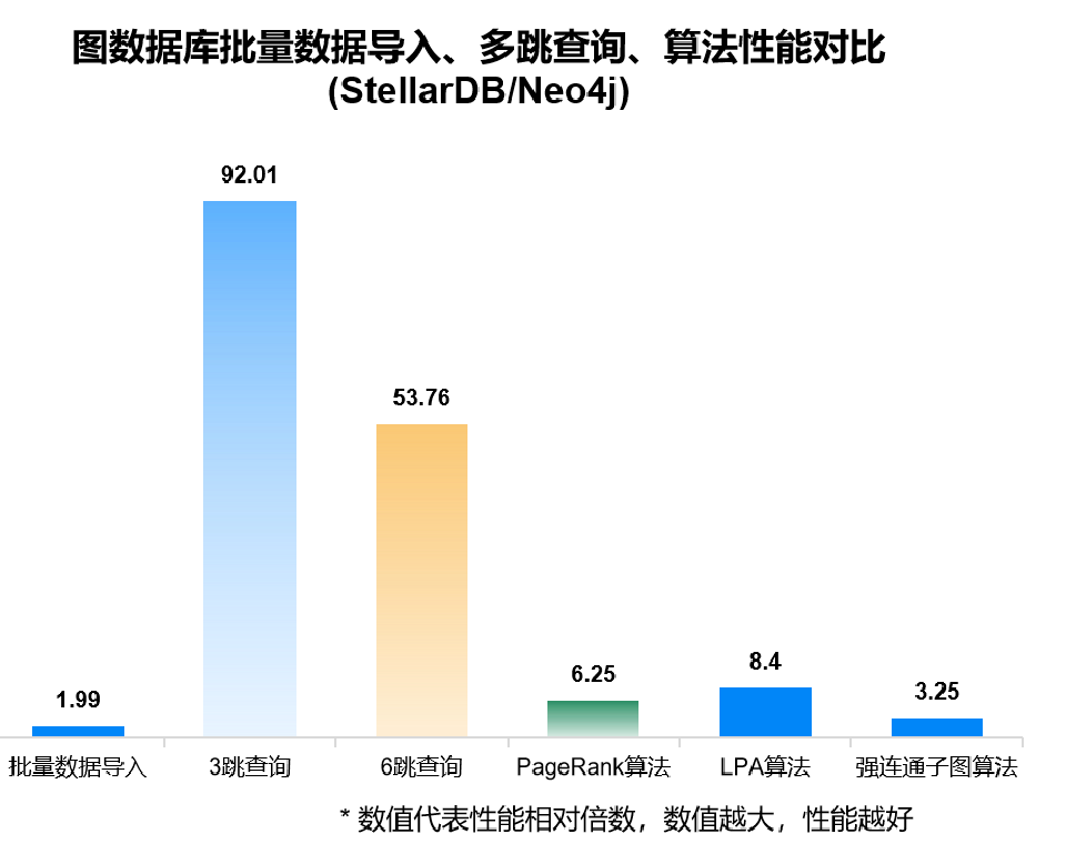 TDH基于多模型统一架构,用户可灵活接入图数据库StellarDB。StellarDB具有原生分布式架构,存储和计算灵活扩展,轻松实现万亿级数据存储计算。StellarDB提供丰富的接口,支持更多的数据源,满足客户现场更多样、更复杂的业务场景。StellarDB提供2D和3D图和图算法可视化。在运维管理方面,StellarDB提供可视化的数据导入、集群监控、图查询任务和图计算任务监控等功能,进一步降低用户的运维门槛。性能方面,StellarDB数据批量导入速度约是Neo4j的2倍,常用算法是Neo4j的3-8倍,多跳查询是Neo4j的50倍以上。
