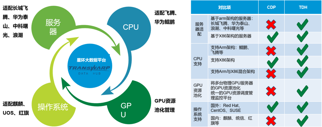 下面我们来看看星环科技自主研发的基于多模型统一技术架构的大数据基础平台TDH是如何实现以上业务场景的(下图右侧)。