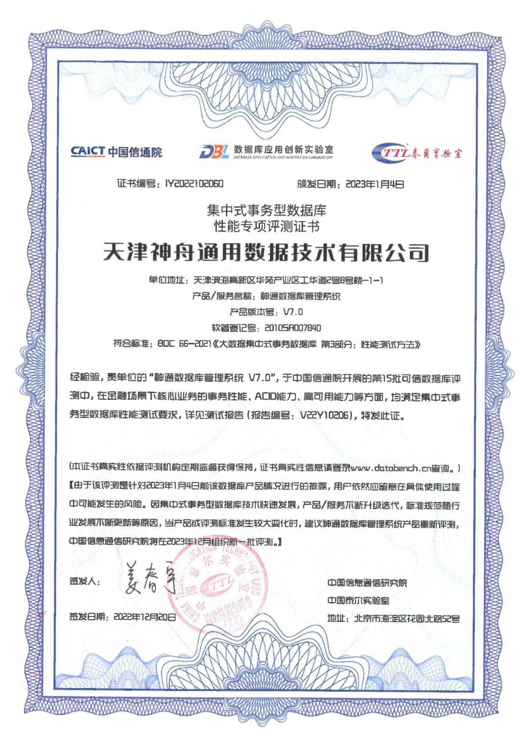 近日,中国信通院公布了第十五批“可信数据库”评测结果,神通数据库管理系统在金融场景集中式事务型数据库性能测试中表现出色,顺利通过能力评测,并荣获评测证书。"可信数据库"评测由中国信通院组织进行,该体系建立了一套衡量各类数据库产品能力和服务能力的标准,通过严格测试和检查筛选优秀产品和优质服务商,圈定国内数据库产品和服务商第一梯队,已成为厂商产品研发和用户采购选型的风向标。作为此次评测的产品,神通数据库管理系统能满足客户高安全、高性能、高扩展的需求,提供企业级数据库服务;具备极强的兼容能力,降低了应用开发及迁移的成本;支持共享存储、高可用、读写分离集群等多种部署方式,解决了横向扩展的问题。发展至今,神通数据库产品已在政府、航天、金融、网安、交通等重点行业部署应用,为关键行业核心系统和政企业务系统提供安全、稳定的数据存储和管理服务。未来,神舟通用公司将持续深耕技术创新,携手更多生态伙伴,积极推动数据库技术与应用场景深度融合,让数据驱动业务创新,赋能千行百业数智化转型。