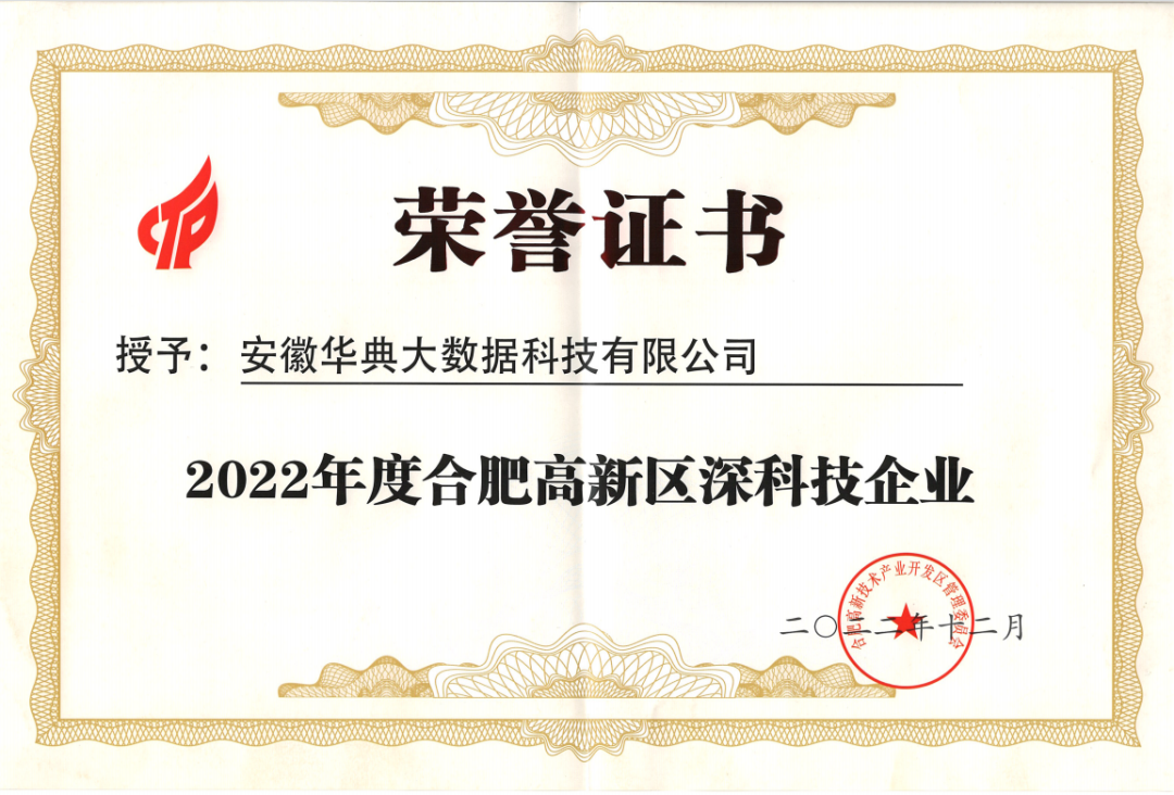 深科技企业是指在前沿技术领域内,拥有全国领先的技术水平和较强的自主创新能力,同时具备广阔发展前景的科技型企业。华典大数据继2021年后,凭借良好的创新性和强劲的发展势头,再次获颁该奖项。