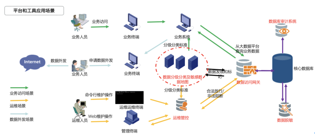本次案例实施,安华金和为用户部署数据安全评估系统,主要功能包括梳理用户数据资产分布,辅助数据分类分级,掌握敏感数据使用情况,了解数据风险状态等,是集“数据资产管理和分类分级、数据风险管理、数据使用管理、数据库漏洞扫描”于一体的综合性数据安全工具。