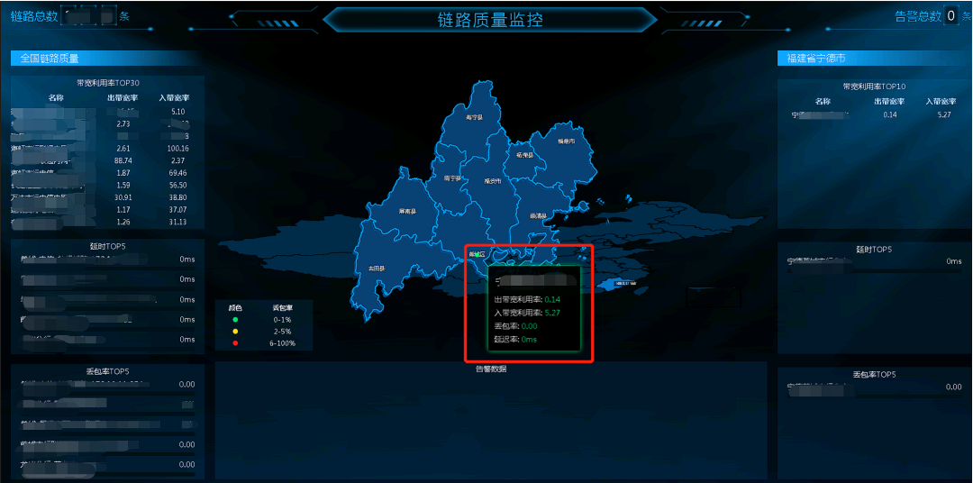 全链路监控大屏支持省内外各分行支行链路质量监控数据汇总展示,这对运维管理人员无疑是一大利好,运维管理者可以将运维的具体执行等技术细节下放,更多地将心思放在整体稳定性的把控上。