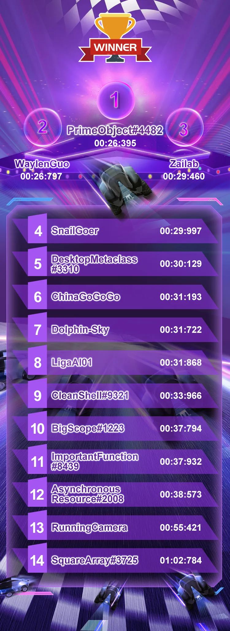 发动、转弯、直线飞驰、越过终点……比赛队伍相聚云端,在赛道上展开一场巅峰对决,畅享独一无二的数字竞速体验!经过比拼,比赛成绩新鲜出炉,一起来看花落谁家。