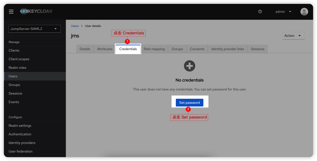 1. 根据图示顺序打开JumpServer中关于SAML 2.0认证的设置界面;