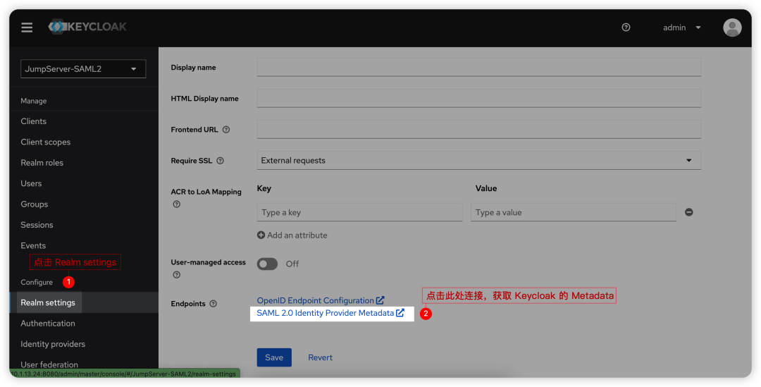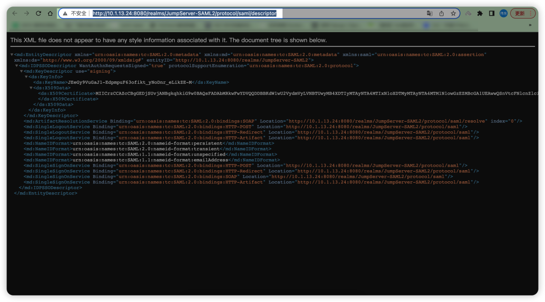 13. 根据图示顺序,获取Keycloak端的Metadata配置信息文件内容;