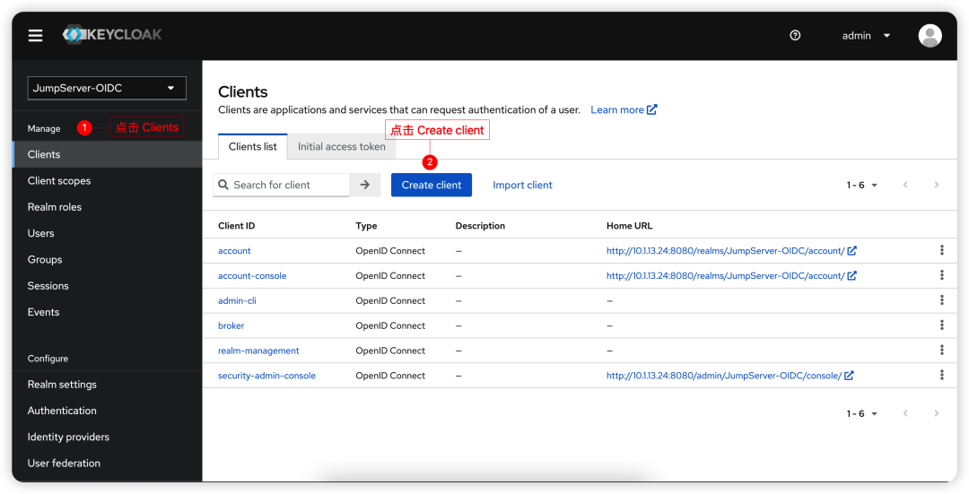 5. 创建完Client后,在此Access settings栏修改配置,域名更换为自己JumpServer下的域名或者IP,点击下方“Save”按钮保存;