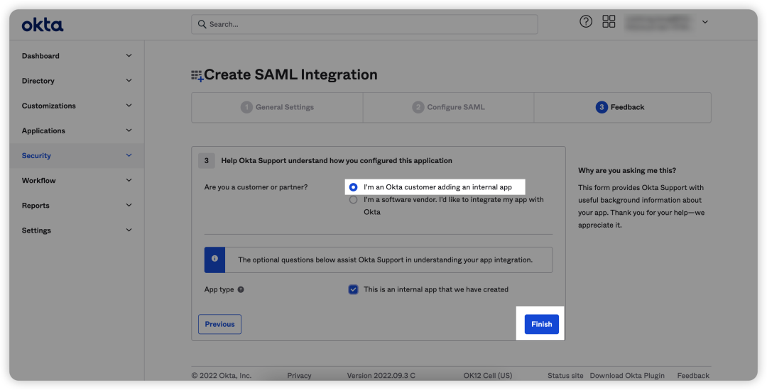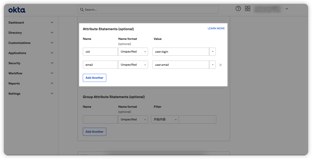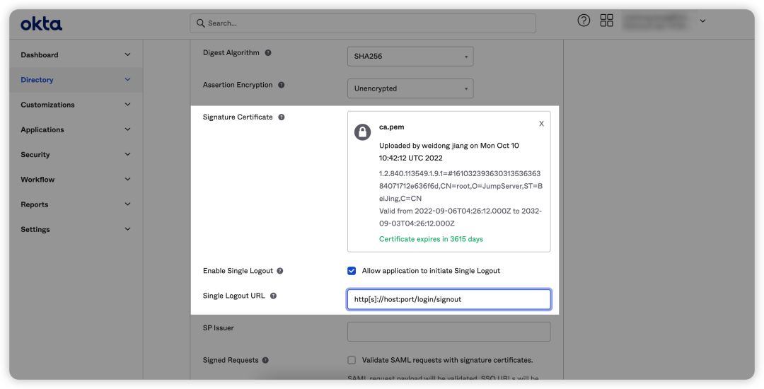 填写Single Logout URL(即Okta注销地址),一般为:http[s]://host:port/login/signout;