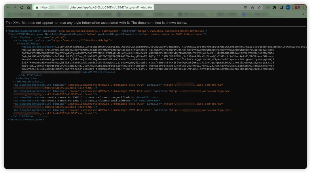 若上述URL配置有误,可通过以下图片所示方式获取正确地址,并填入“Single Logout URL”处;