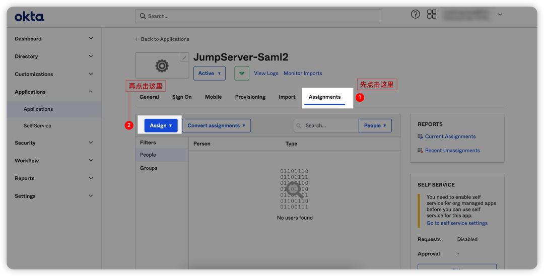 11. 点击应用名称,进入应用设置中找到“Assignments”选项后,点击“Assign”菜单邀请用户进入当前应用。