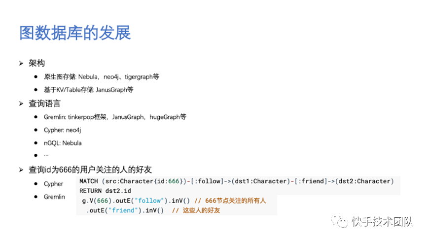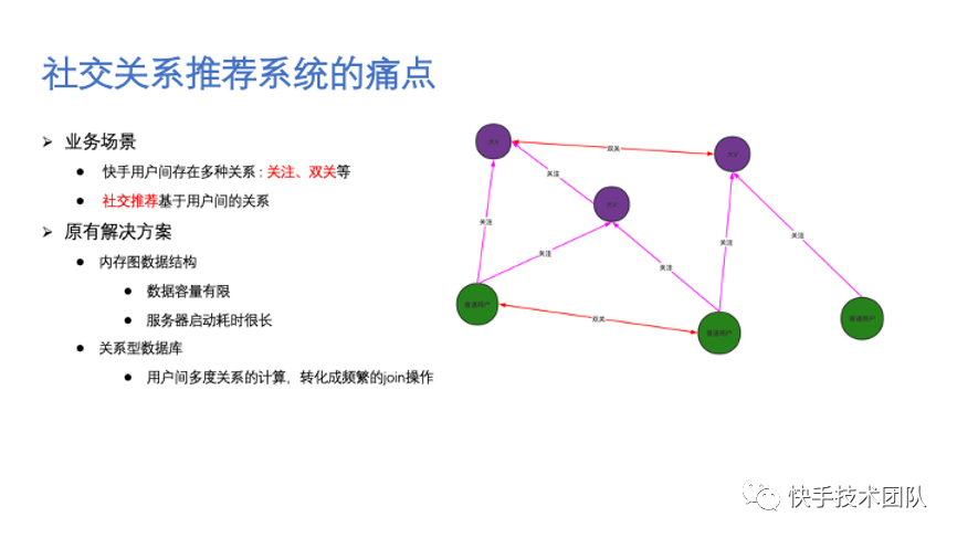 刚才我们提到,图数据模型,可以很好的运用在社交关系等场景,快手内用户间正好存在着多种关系。