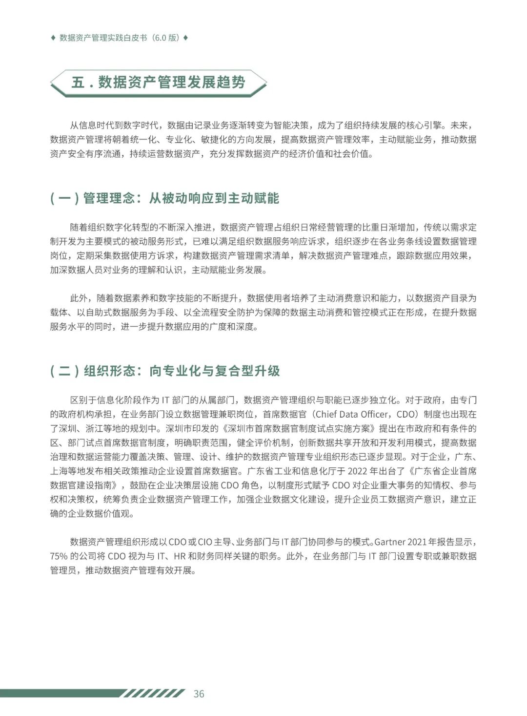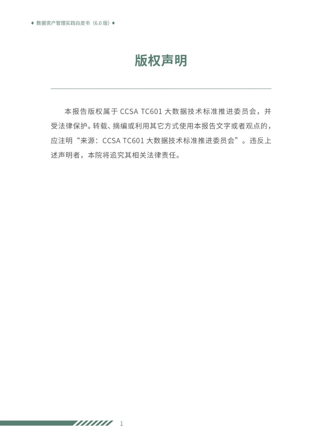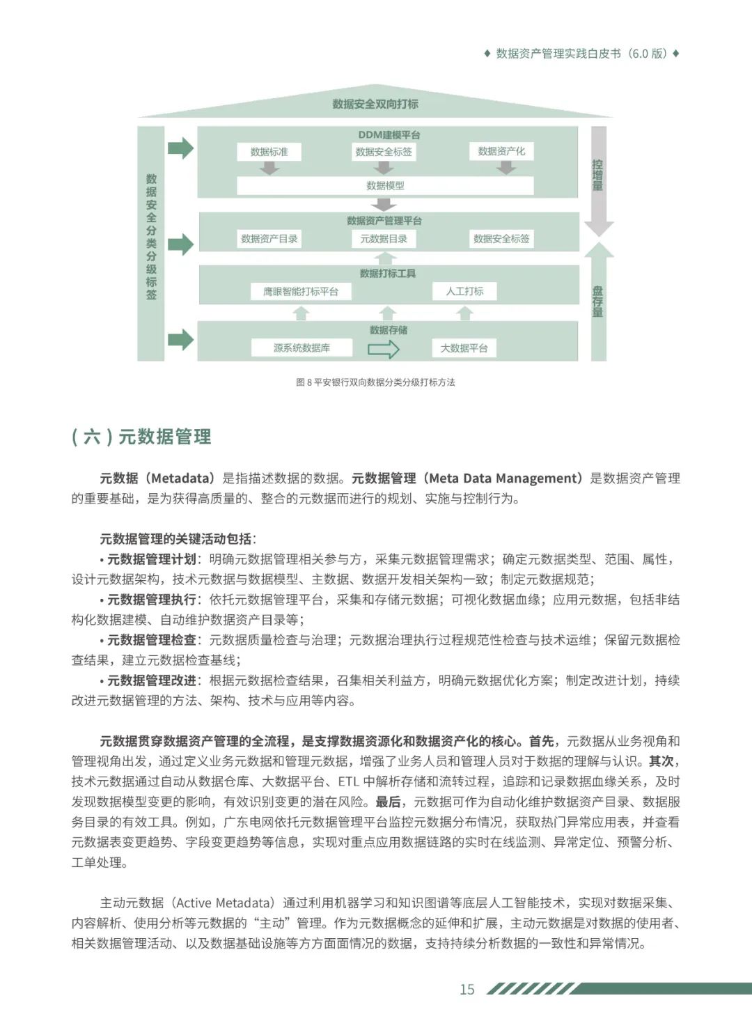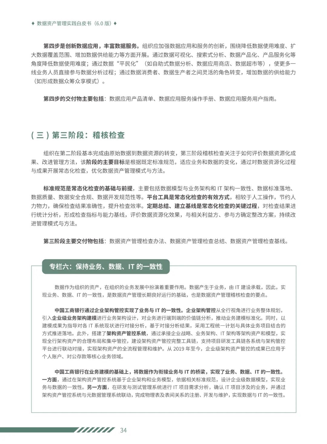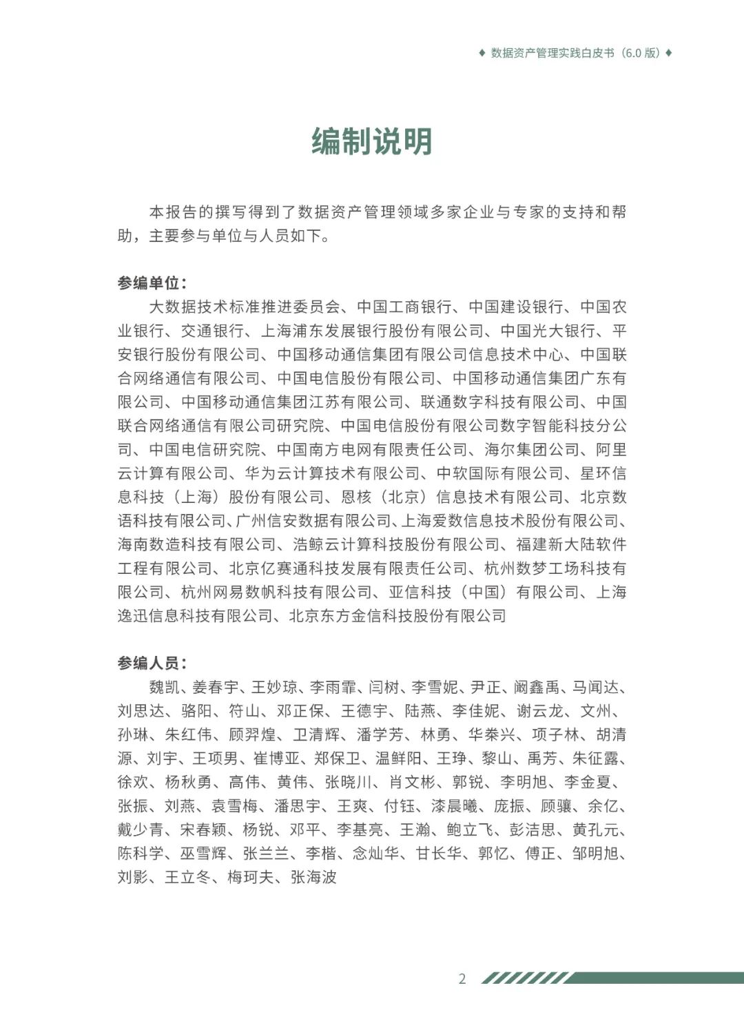 《数据资产管理实践白皮书(6.0版)》在《数据资产管理实践白皮书(5.0版)》的基础上,结合2022年数据资产管理领域政策和行业动向,持续跟踪各行业典型方法和实践案例,更新了数据资产管理的理念和方法,对数据资产管理领域的发展现状和趋势进行了总结,有助于企业了解自身所处的发展阶段,更好的拟定下一步建设思路。