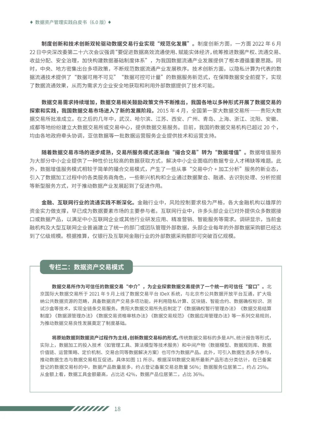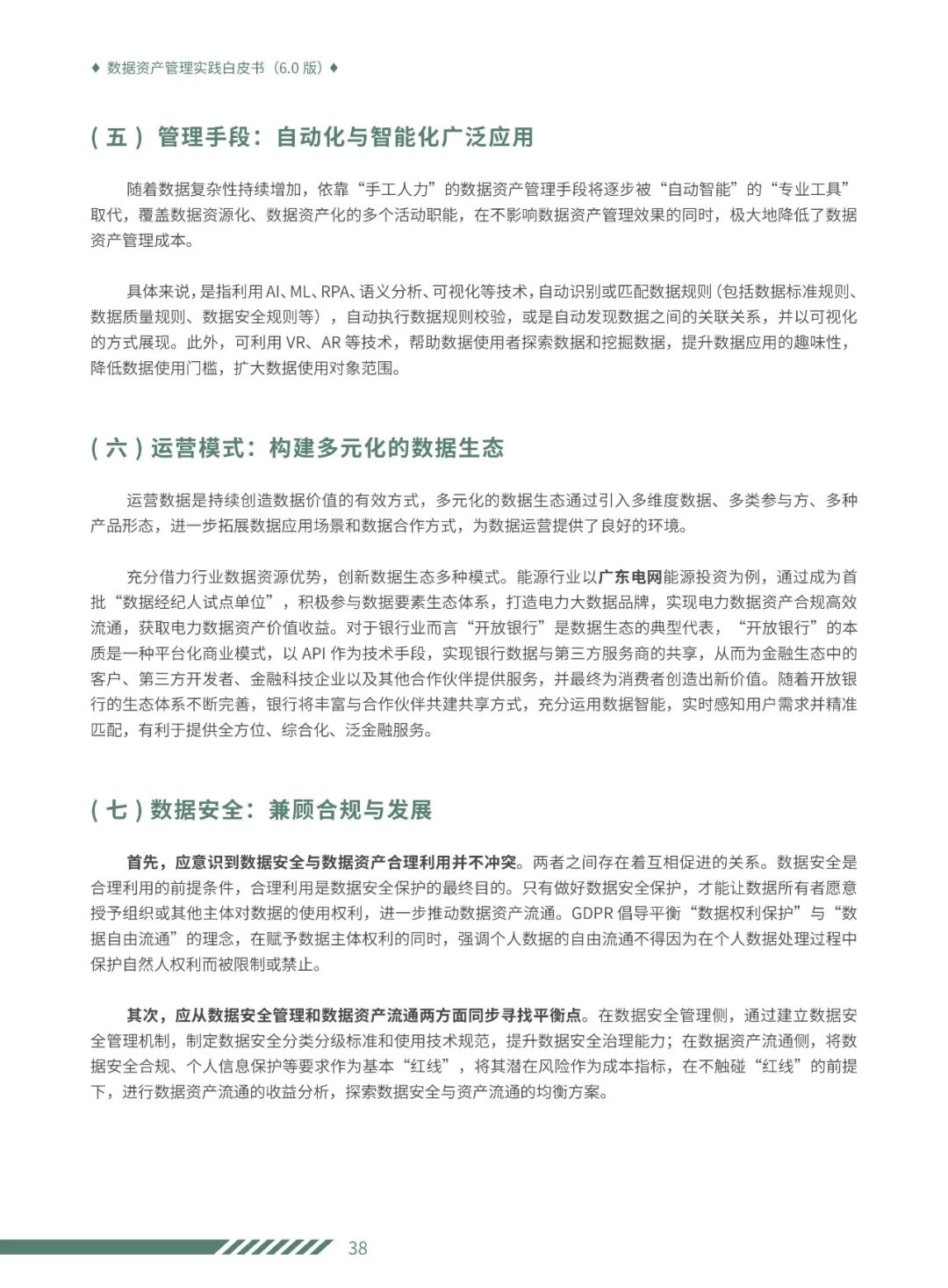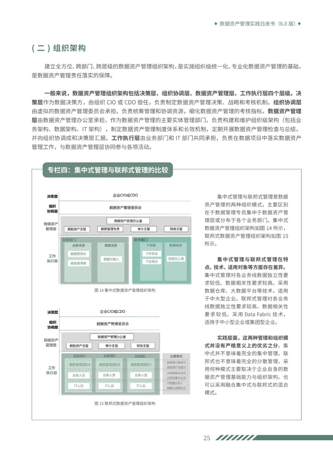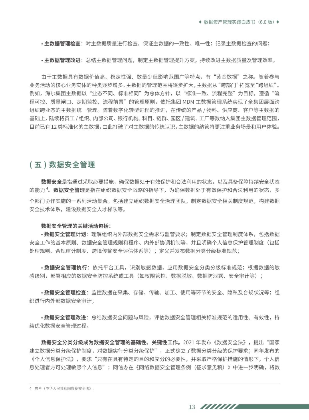 《数据资产管理实践白皮书(6.0版)》在《数据资产管理实践白皮书(5.0版)》的基础上,结合2022年数据资产管理领域政策和行业动向,持续跟踪各行业典型方法和实践案例,更新了数据资产管理的理念和方法,对数据资产管理领域的发展现状和趋势进行了总结,有助于企业了解自身所处的发展阶段,更好的拟定下一步建设思路。