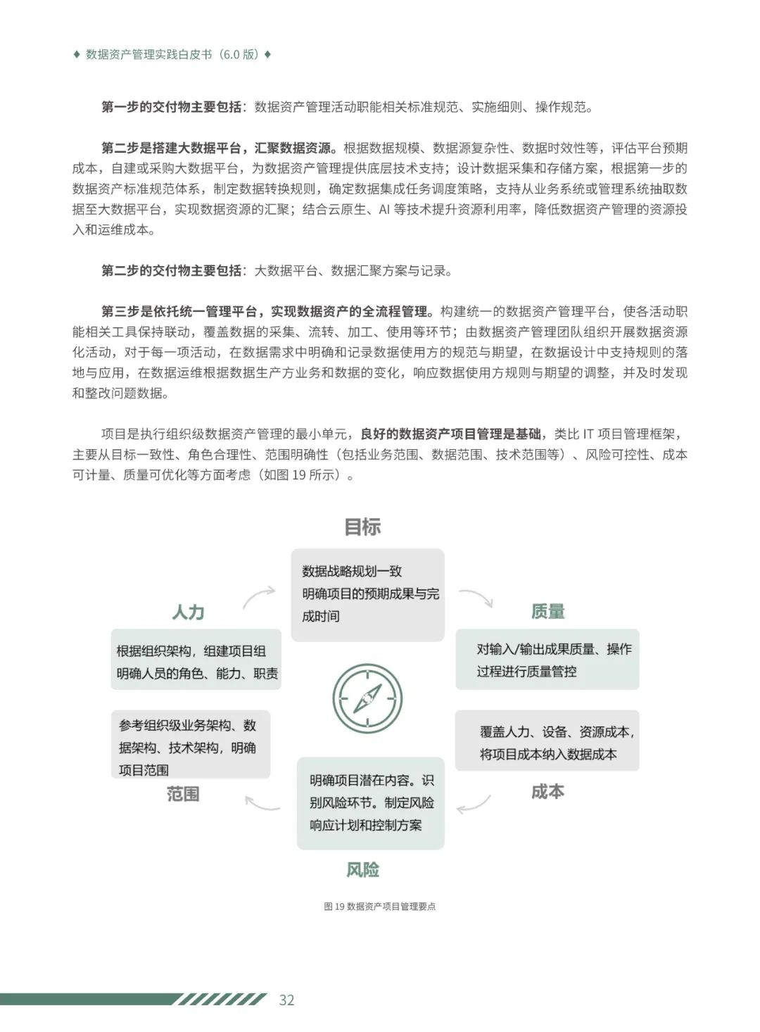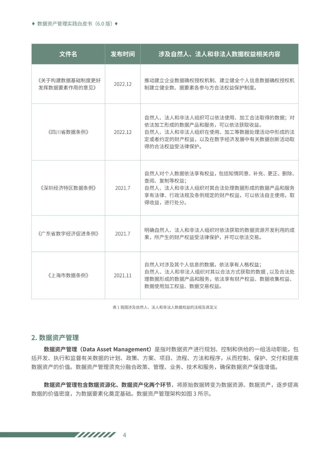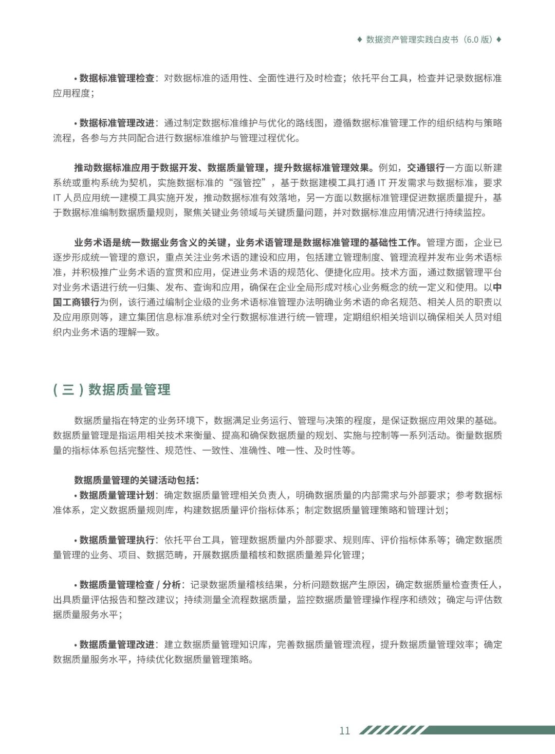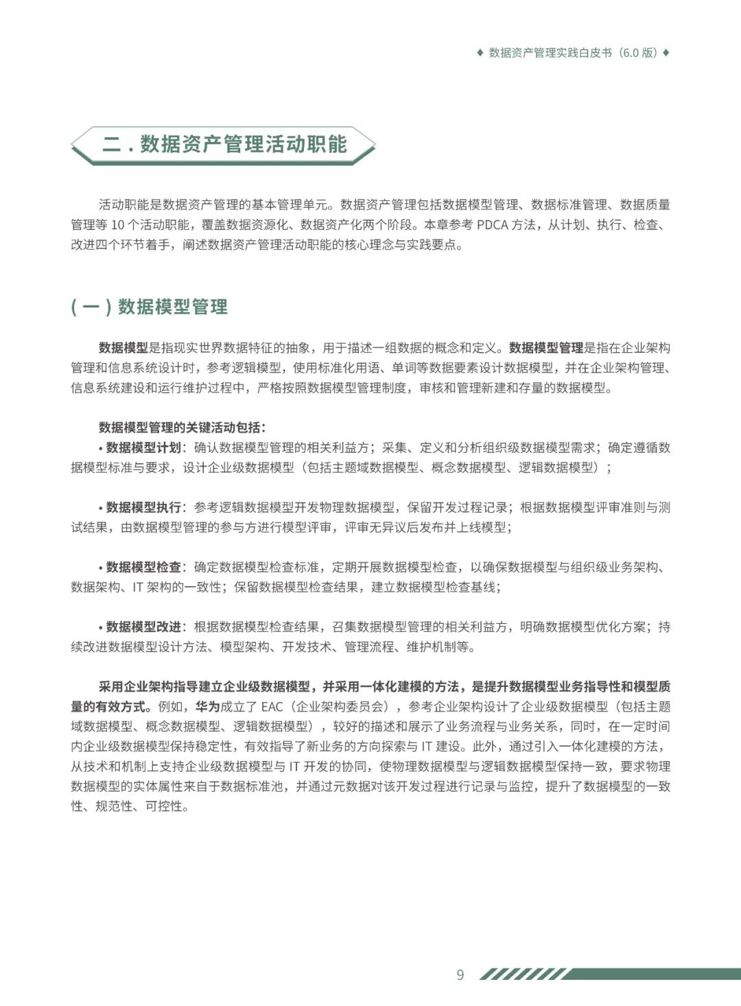 为指导企业解决以上问题,本白皮书总结了数据资产管理活动职能的核心理念与实践要点,提出了战略规划、组织架构、制度体系、平台工具、长效机制五大数据资产管理保障措施,提倡企业体系化开展数据资产管理工作,提升数据资源化效率,创新数据资产化模式,引导企业充分融入数据要素市场发展,加速数据资产价值释放。