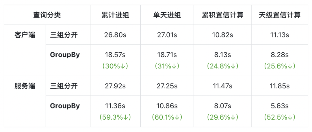 DataTester的数据查询和其他数据应用产品不同,DataTester在数据查询时,所有的查询都会针对每一个实验版本都查一遍,而过程中中唯一的区别就在于实验版本ID,所以和SQL中GroupBy的应用场景特别契合,通过GroupBy查询不仅可以极大的减少查询的数量,也可以降低多次查询造成的重复扫表,提高查询效率。