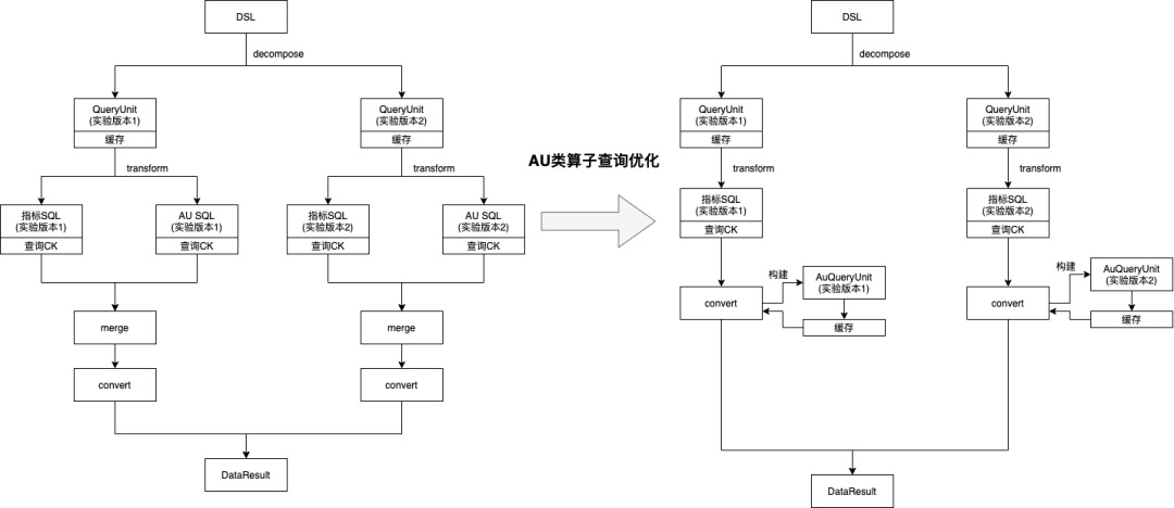 指标查询引擎对DataTester的au类型算子都做了定制,一个指标查询会产生两条sql,一条正常指标的查询sql,另一条是对any_event的au的查询,在最后结果处理的时候对两条sql的查询结果做了一个合并,一起返回到DataTester的科学计算模块。但是,每次打开报告页都必定会查进组人数,它和any_event的au是同一个值,au类型算子查询的时候无法复用进组人数的结果,而au查询又可以算是最慢的查询之一,降低了报告页打开的速度。