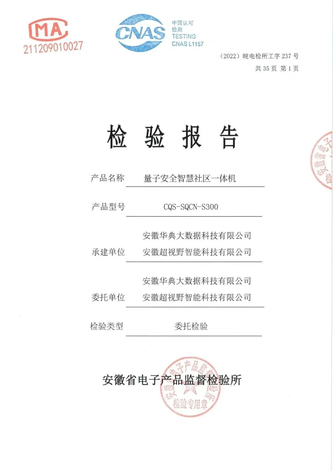 华典大数据联合社区一体机厂商超视野共同推出“量子安全智慧社区一体机”,针对智慧社区场景中的智慧出行、AI安防、疫情防控、智慧管家服务等数据安全需求做了量子安全加固,产品已通过安徽省电子产品监督检测所权威检测。
