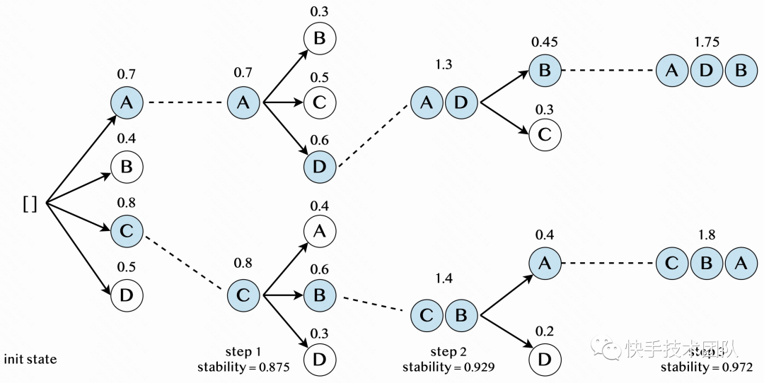 个序列,它们的 ListReward 的差别随着搜索步数增加会单调递减。利用这个特性,我们定义了 beam search 的稳定性,并提出自适应搜索步数的 beam search(图4),可以将 beam search 的时间复杂度从